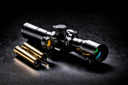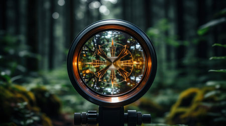 Close-up of a hunting rifle scope with vivid crosshair details