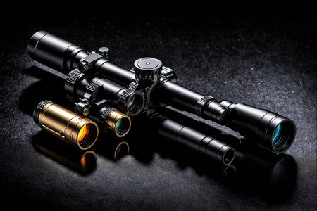 A close-up view of a sophisticated scope mounted on a tripod, emphasizing sharp details and clarity.
