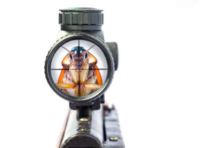The view of a rifle with a cockroach is the goal of removal.