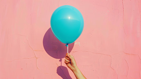 Pink balloon on a blue background. Minimalistic concept. Copy space.