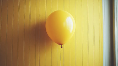 A vibrant yellow balloon floats against a matching wall, creating a lively and cheerful scene. Ideal for themes related to joy, celebration, and decoration inspiration.