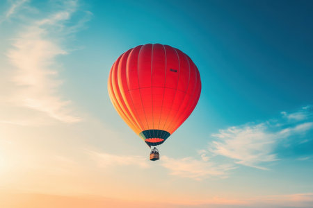 A stunning hot air balloon ascends gracefully into a clear blue sky. This vibrant image captures the essence of adventure, freedom, and the beauty of outdoor exploration.