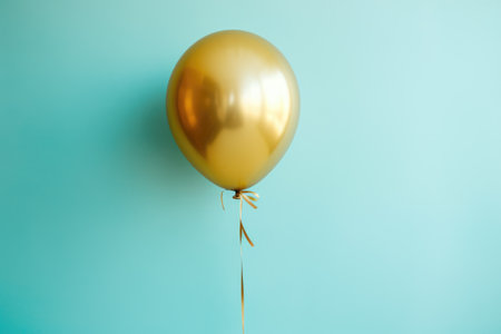 Gold balloon is attached to blue wall. This versatile image can be used to add touch of celebration or decoration to various projects.