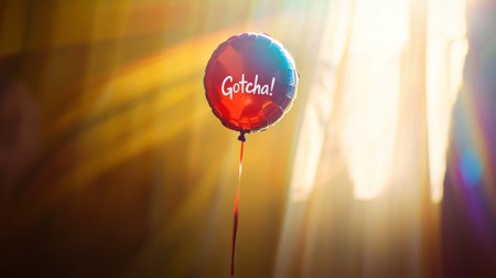 Gotcha! Balloon on April Fools Day. Concept of Humor, Celebration, Pranks, Joyful Surprise. Party Decor, Whimsical Moment, Cheerful Atmosphere.