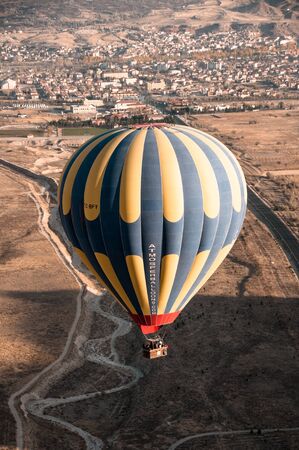 Cappadocia, Turkey November 13, 2016: Aerostat one with passengers in the sky early in the morning in a unique place Cappadocia