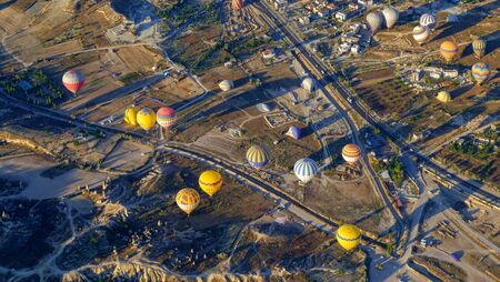 aerial view of Colorful hot air balloons at Cappadocia, Turkey. High quality photo