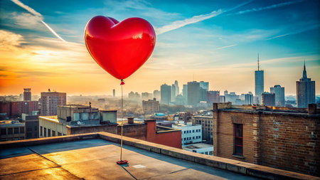 Urban Exploration: Love Heart Balloon Ascending in a Blue Sky