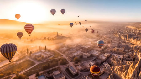 Hot Air Balloons Soaring over Cappadocia s Surreal Landscape A Magical Dawn, Turkey.