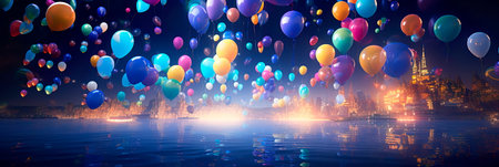 abstract backgrounds and bokeh, showcasing a midnight balloon drop to welcome the New Year. Generative AI