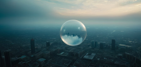 Surreal Cityscape with a Floating Transparent Sphere