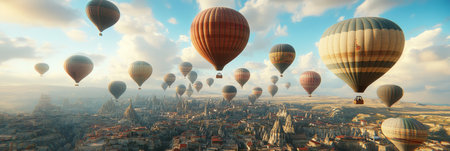 A stunning display of colorful hot air balloons soaring high in the sky, capturing a sense of freedom and adventure, perfect for travel and nature themes.