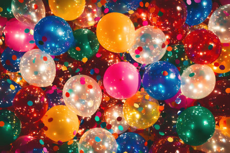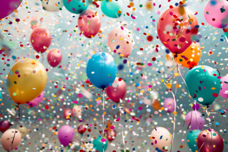 Festive balloons and confetti fill the atmosphere, adding color and joy to celebrations, creating a lively and cheerful ambiance for gatherings.