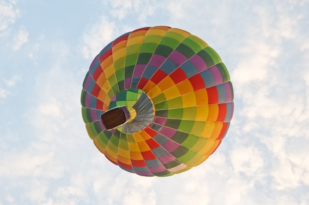 Multicolor hot air balloon on sky with cloud, vintage color effect
