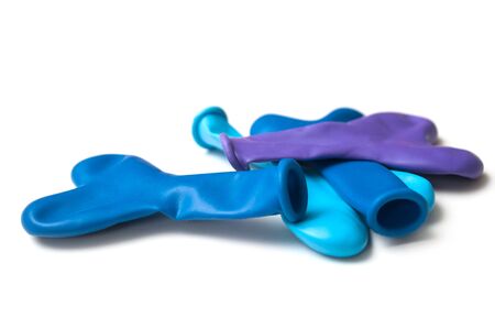 uninflated colorful party balloons on a white background. Multi-colored balloons for New Year, Birthday, Christmas