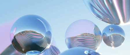 Abstract colorful 3d art background. Holographic floating liquid blobs, soap bubbles, metaballs.