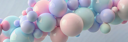 3D rendering round pastel colored bubbles background flying in the air. Three dimensional Objects. Banner illustration.
