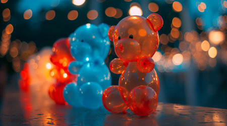 A group of colorful balloons in the shape of a teddy bear on a blurred background.
