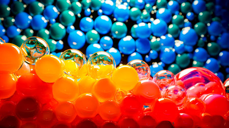 A captivating abstract composition of vividly colored flying spheres set against a transparent backdrop. The dynamic arrangement offers vibrant visual appeal, ideal for artistic and