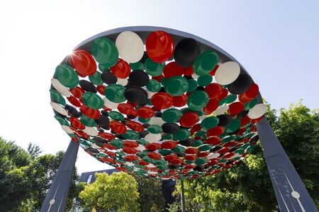 Tirana, Albania, July 8 2019: The friendship monument in the city center of Tirana, commemorating the Friendship between the People of Albania and the People of Kuwait. Built in 2016. Europe.