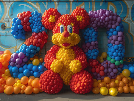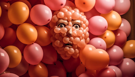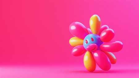A cheerful flower character made of colorful balloons, set against a vibrant pink backdrop. Perfect for festive themes, childrens parties, or playful designs.