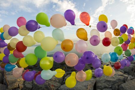 Advertising on the balloons, the Red balloon is filled with helium gas in the sky