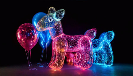 Vibrant neon colors and glowing tube textures create a captivating atmosphere