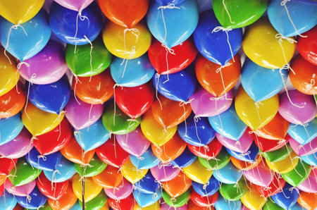 Colorful balloons background. Many multicolored balloons close up.