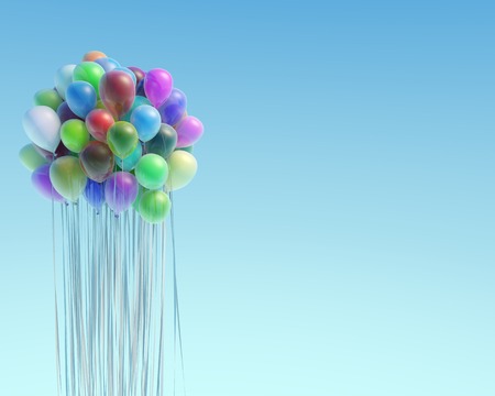 Multi-colored helium balloons fly in the sky