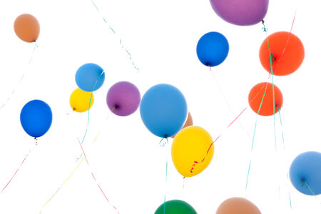 colorful balloons filled with helium fly into the sky