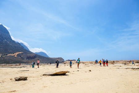 GRAMVOUSA-BALOS, CRETE ISLAND, GREECE - JUNE, THE 4 TH, 2019: People at the beach of Gramvousa