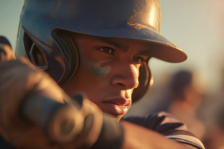 Focused Baseball Player Ready to Swing for the Fences, Dramatic Close Up Sports Portrait