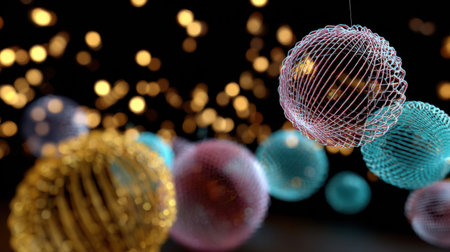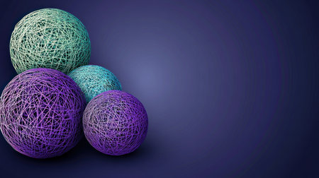 This image presents a digital artwork featuring spheres with varying colors, interwoven with flowing, textured lines. The composition showcases a combination of dark and bright elements. The style suggests a futuristic or technological theme, possibly suitable for commercial and editorial applications such as website backgrounds or design elements.