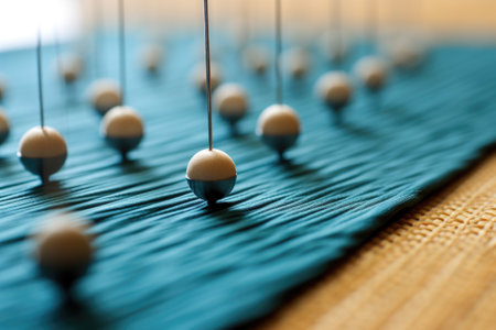 acupuncture needles arranged on a mat, created with generative ai