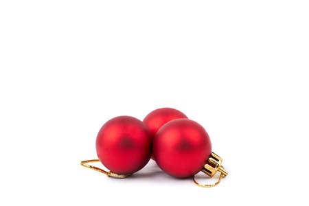 Three red Christmas balls decorations. Red christmas ball isolated on white background. Decorations for Christmas holidays.