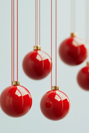 Generative AI Row of bright red and silver Christmas ornaments, perfect for creating a festive holiday scene ::1 shining, merry decorations, ideal for holiday ambiance