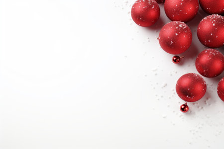 Christmas decorations - red baubles on white background copyspace