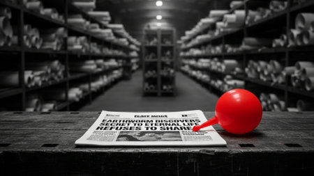 A bright red round object rests on white lined paper, contrasting with a black keyboard in the background. Ideal for modern design concepts.