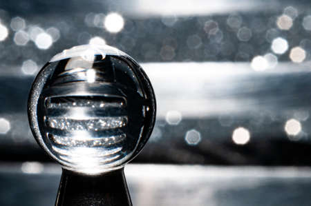 crystal ball on the background of a blurred silver bokeh