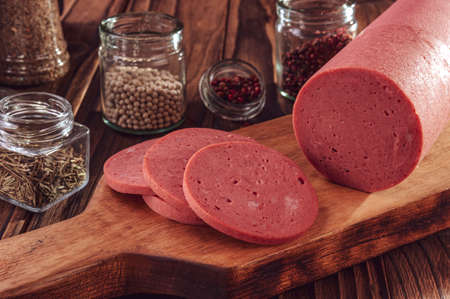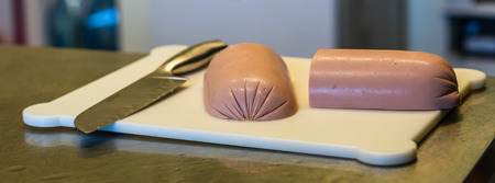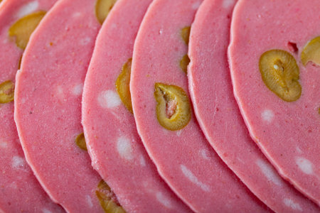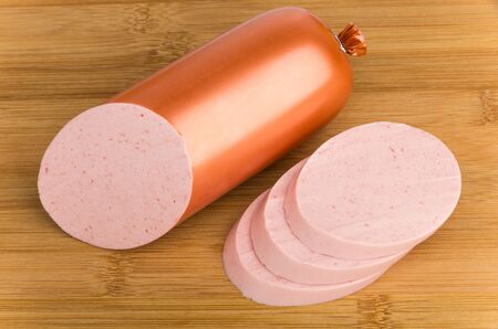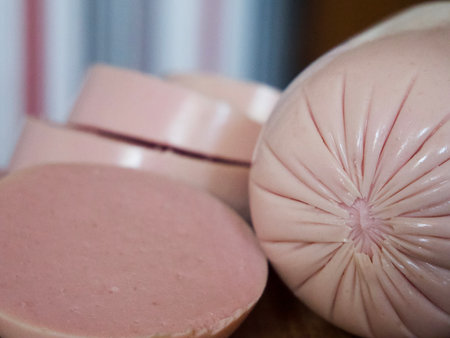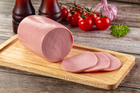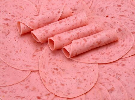 Bologna sausage thin sliced cut with knife