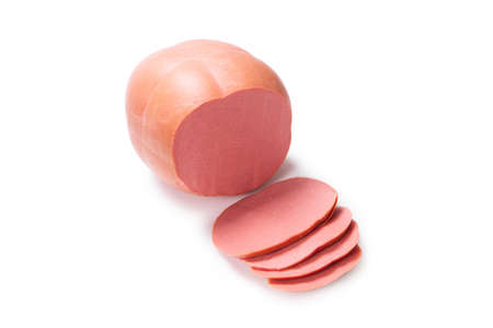 mortadella sausage on the white background