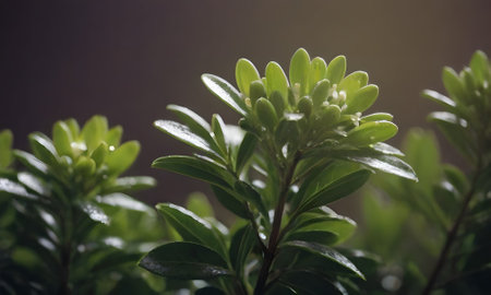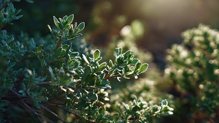 The Guayule in spring, fresh green leaves, soft sunlight filtering, vibrant atmosphere full of vitality, natural textures, serene mood.