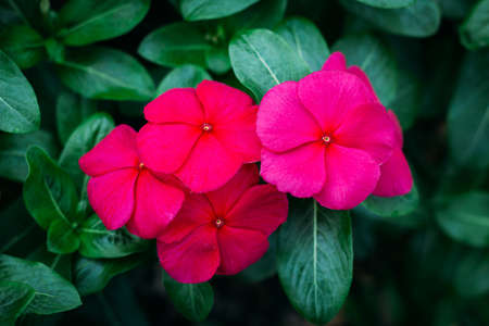 The purple Catharanthus roseus are blooming in the garden. selective focus of pink flowers periwinkle or Catharanthus roseus