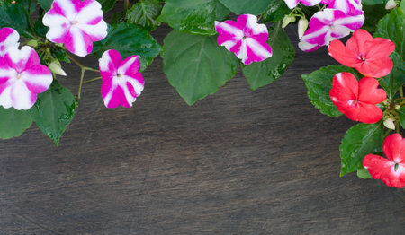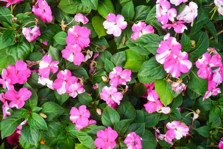 Background and texture of colorful Impatiens (Impatiens walleriana) flowers in the garden.