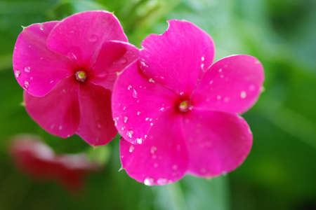 Beautiful pink flowers with dew drops in the morning sunlight.