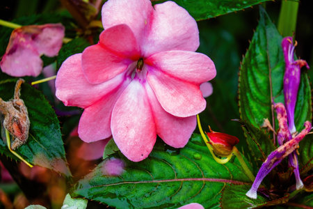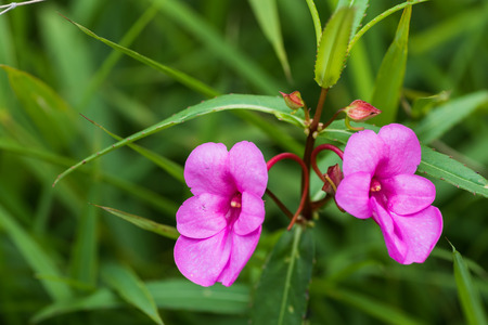 Pink beautiful flowers impatiens balsamina nedotroga balsamina