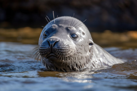 Closeup of a harbor seal swimming in water showing its ear opening. Concept Marine Wildlife, Seal Behavior, Aquatic Ecosystems