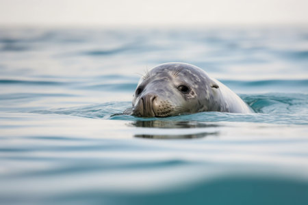 seal pup swimming in the ocean, its dark eyes peering out, created with generative ai