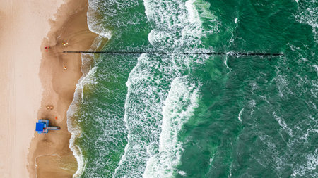 Wonderful blue waves on Batlic sea. Tourism at the Sea. Aerial view of sea in Poland, Europe