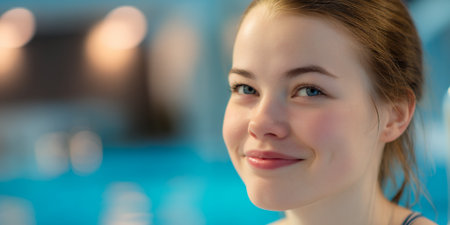 Portrait girl having fun in indoor swimming pool.