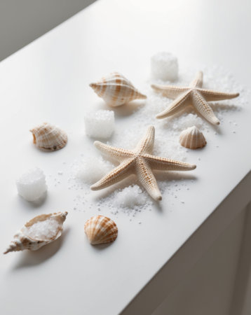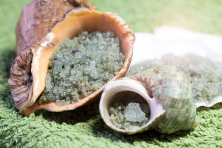 Green sea salt and shells, nature